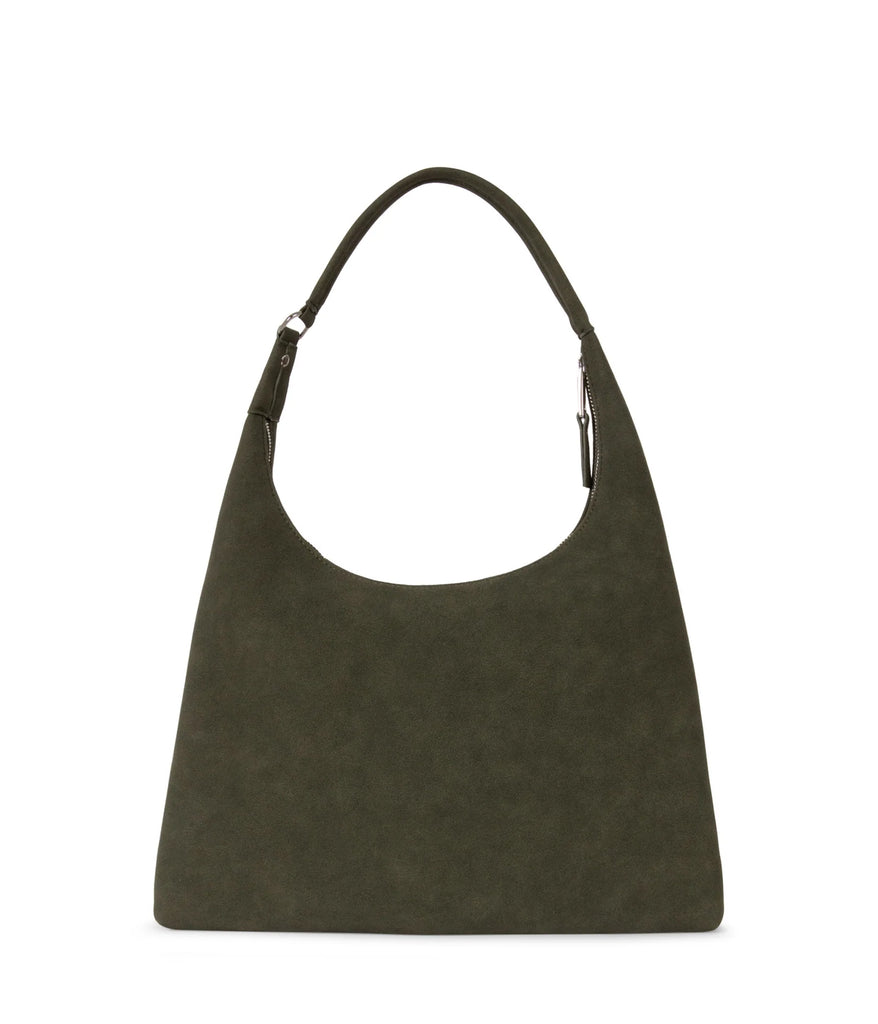 Shoulder bag with a double zipper compartment and an adjustable strap.