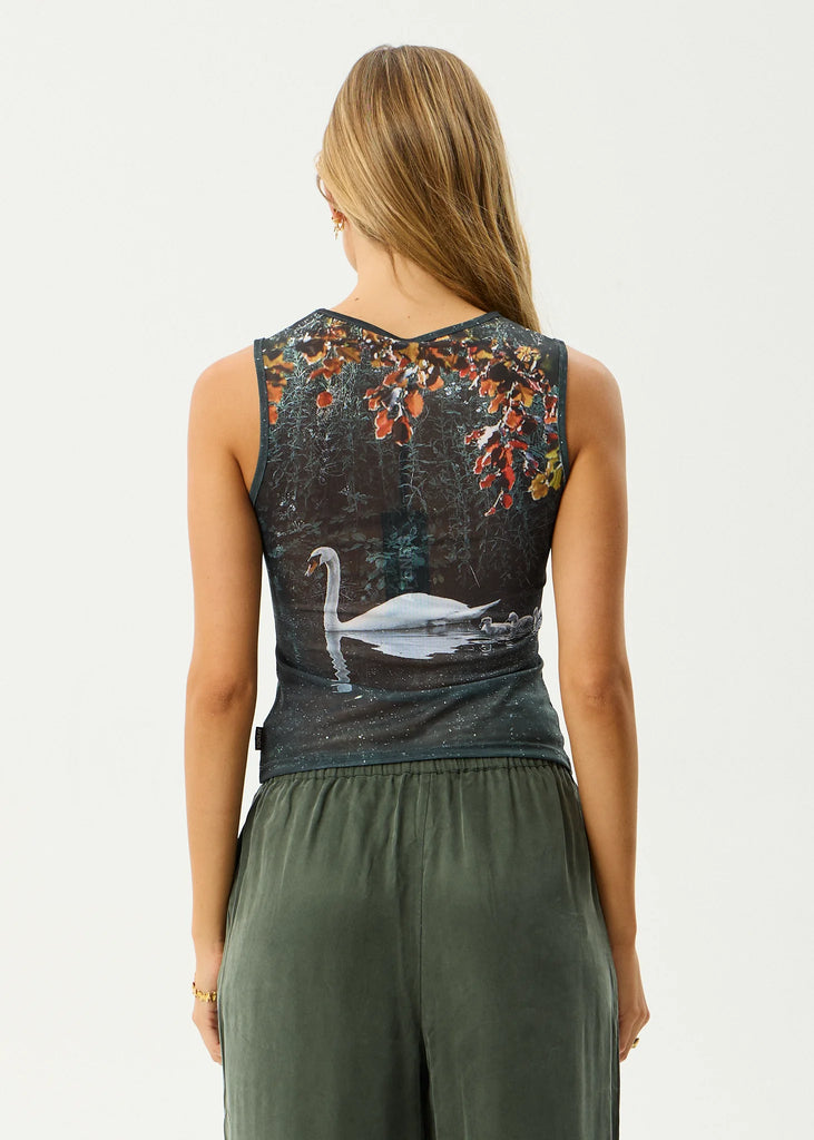The 'Swan Song' tank is made from a recycled sheer mesh fabric with an all-over graphic. Designed with a slim fit and high neck, it's a statement piece that can be dressed up or down.