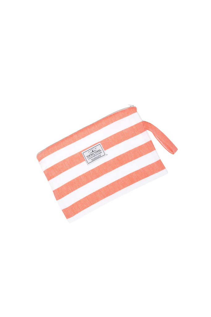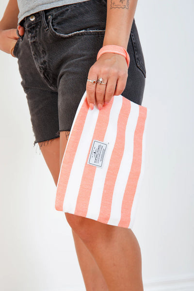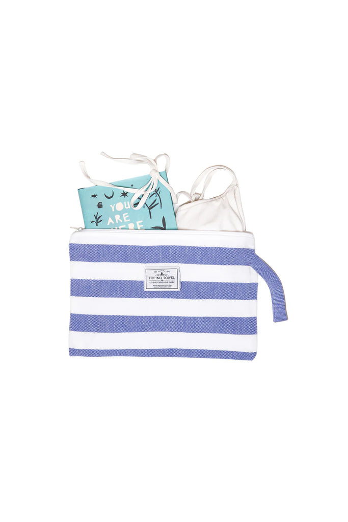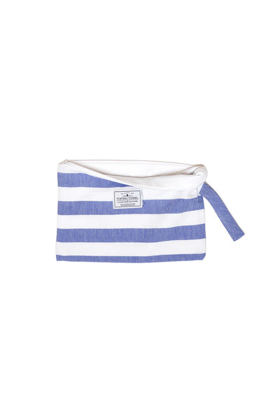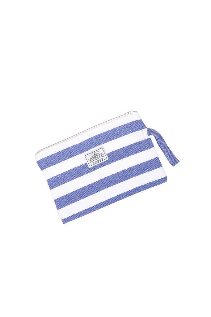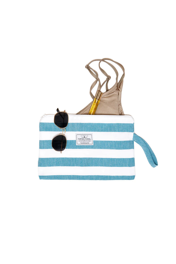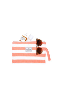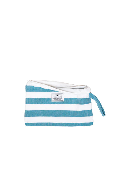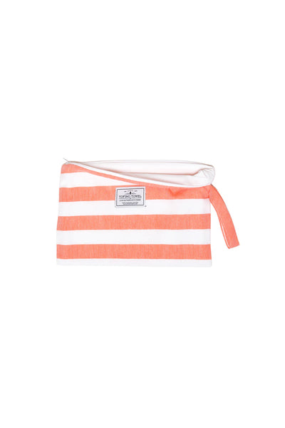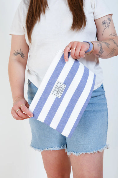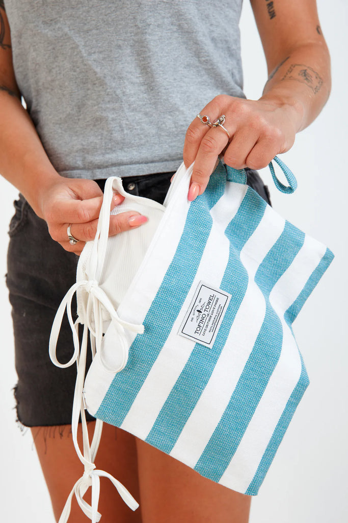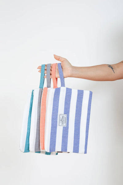 Go from wet to dry without a hitch with the Mira Wet Dry Bag. Made with a Turkish cotton exterior and a water resistant interior, this bag keeps your dry items dry while you hit the pool, beach, or sauna. It's the perfect blend of function and style with a classic beach stripe and handy wrist handle. No more soggy messes here!